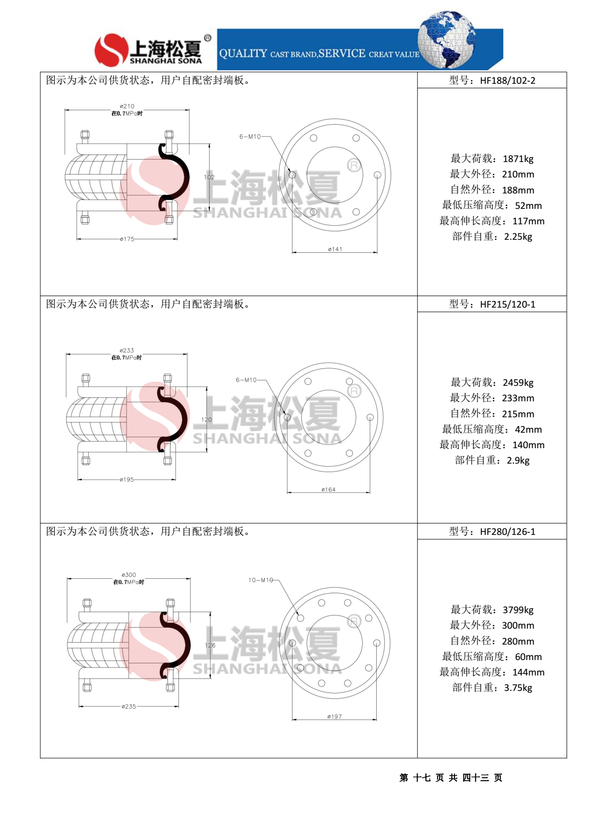 按照性能與.點又稱為:橡膠空氣沖程調(diào)節(jié)器,橡膠空氣隔振體,兩個產(chǎn)品名稱,橡膠空氣彈簧按形狀分為囊式、膜式和袖筒式三大類。按密封結(jié)構(gòu)形式分為壓力自封式、輪緣夾緊式、箍環(huán)密封式和混合式四大類,橡膠空氣彈簧的載荷主要由簾線承受,簾線的層數(shù)主要由2層組成,.殊要求產(chǎn)品由4層簾線層組成。內(nèi)層橡膠主要是起密封作用,外層橡膠除了起密封作用外,還起保護(hù)作用。
